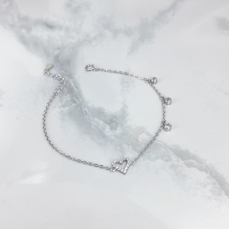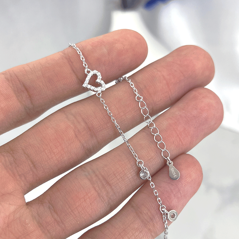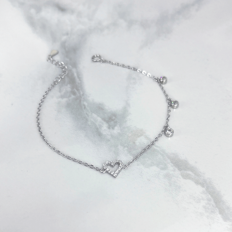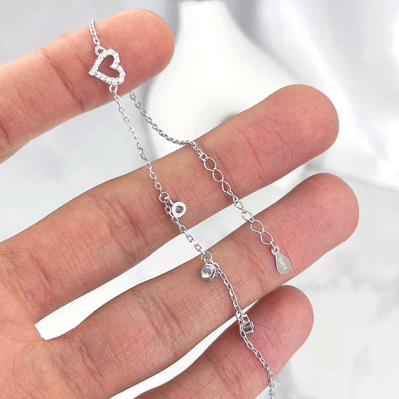 دستبند نقره دخترانه مدل قلب آویز نگین