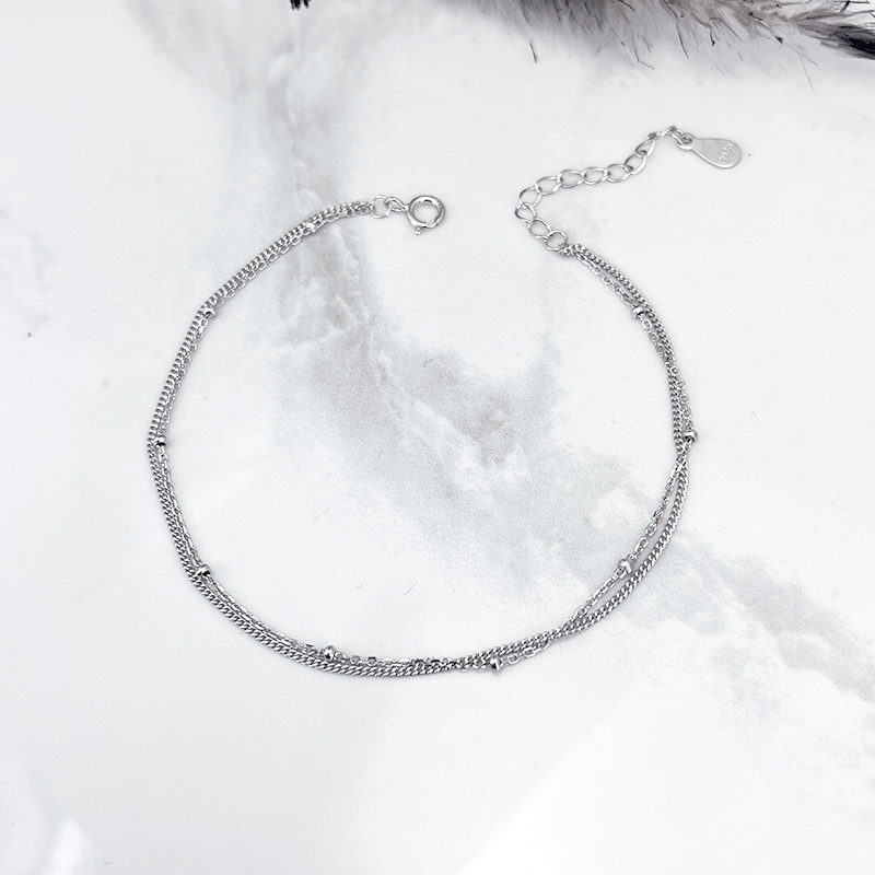 این دستبند نقره ظریف دو زنجیر جدای از جذابیت ظریف و مینیمالیستی که دارد بهترین گزینه برای استفاده همیشگی بوده و جدای از آن بهترین گزینه برای استفاده این دستبند نقره در کنار ساعت می باشد.