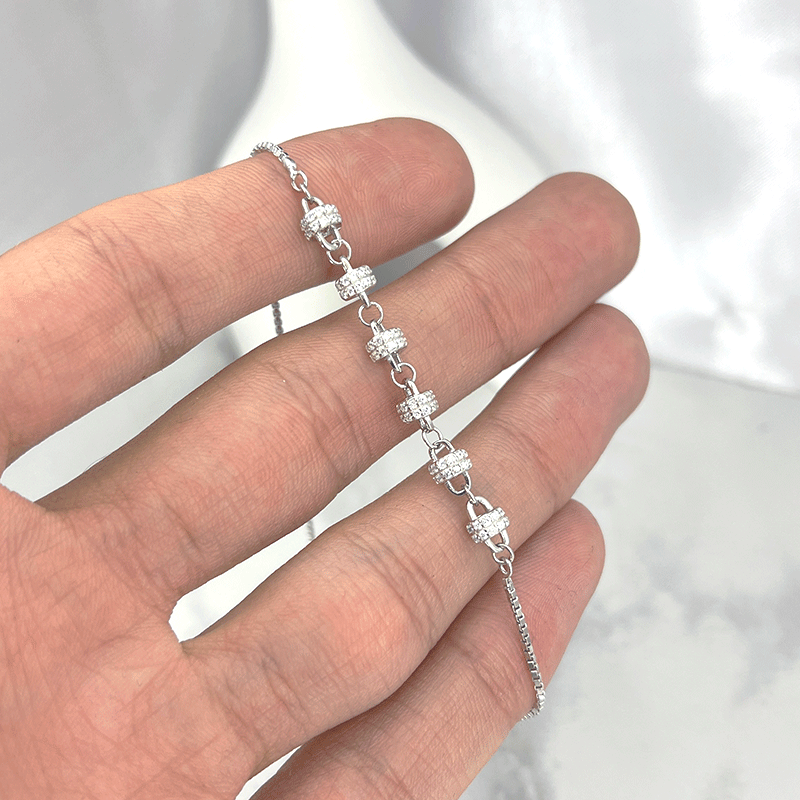 دستبند نقره دخترانه مدل آسانسوری گوی نگین