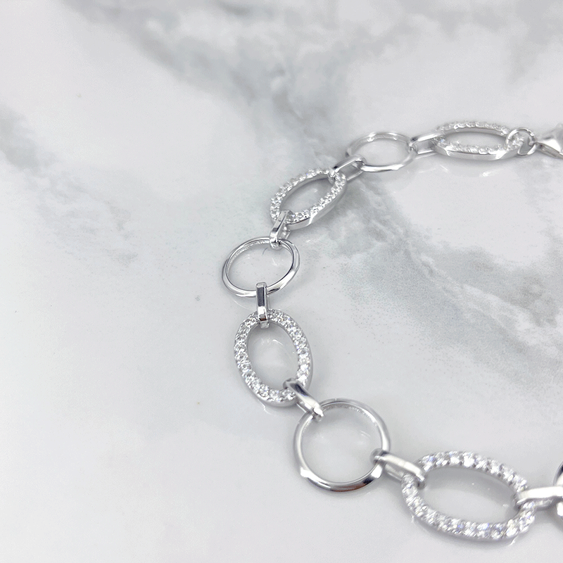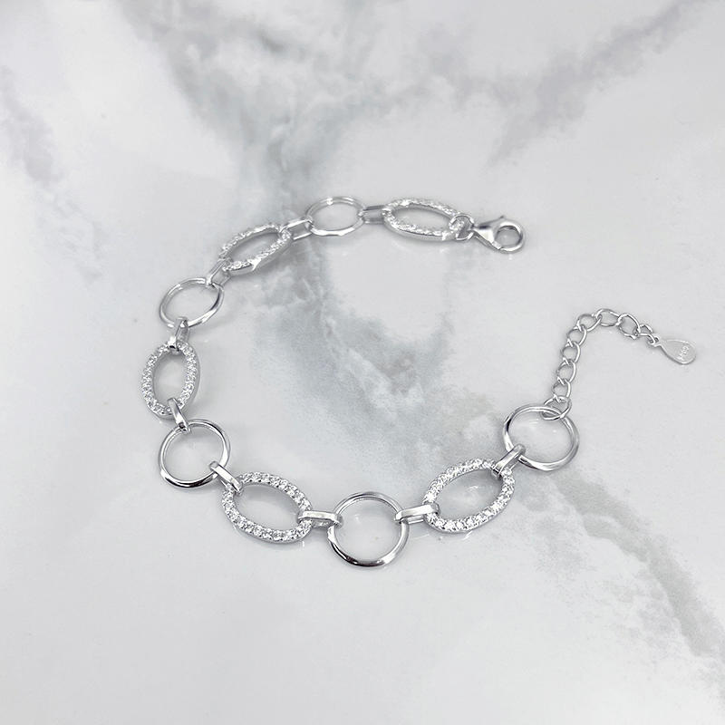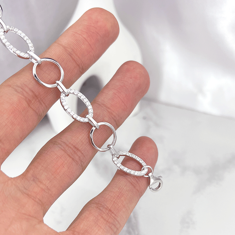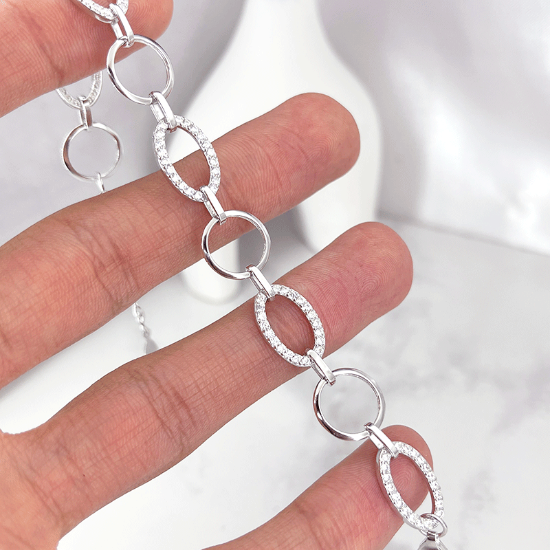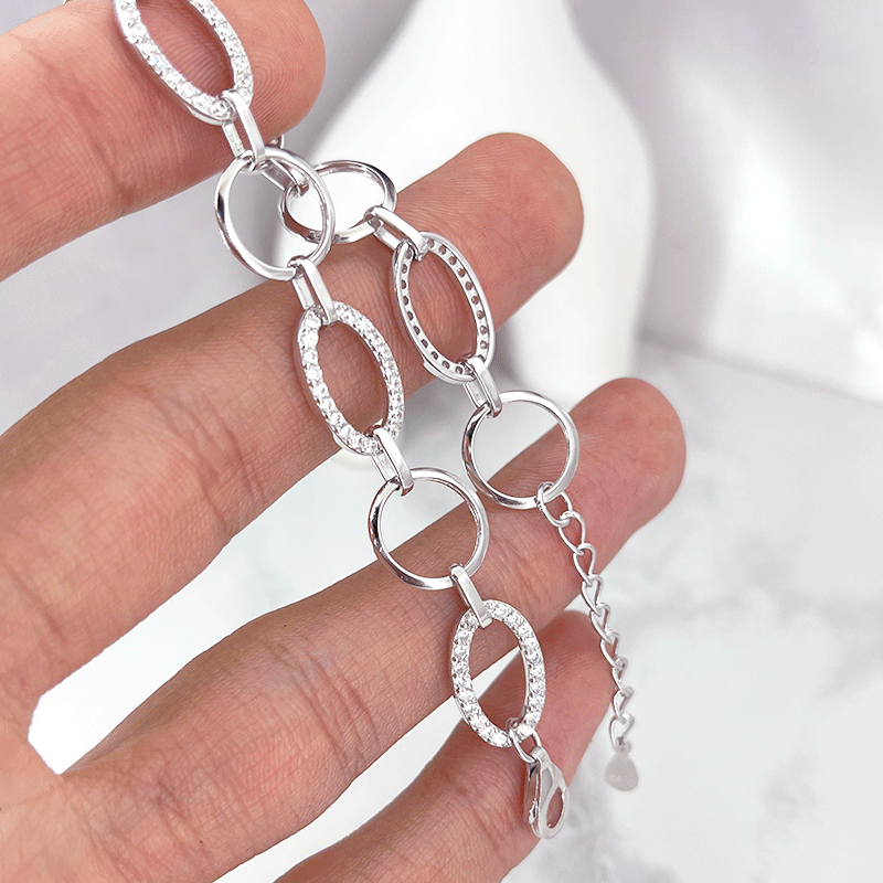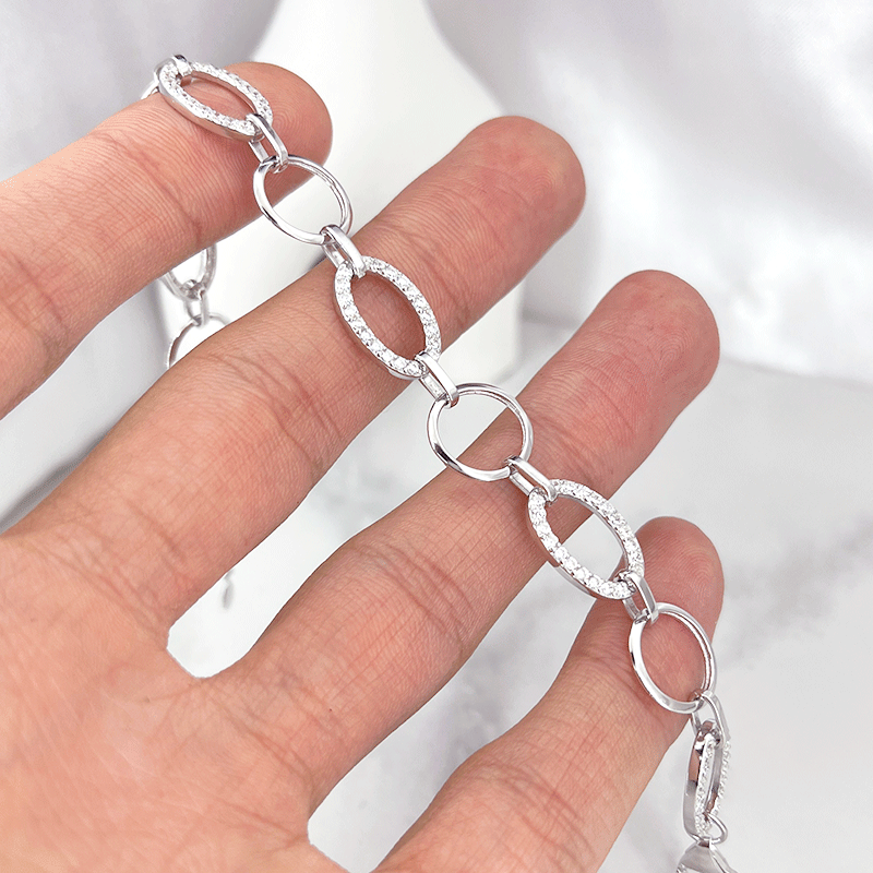 یکی دیگر از ویژگیهای متمایز این دستبند زنانه بیضی و دایره، استفاده از روکش رودیوم در ساخت آن است. این روکش علاوه بر اینکه به حفظ درخشندگی اولیه دستبند کمک میکند، آن را در برابر تغییر رنگ و تاثیرات منفی عوامل محیطی مانند رطوبت یا تماس با مواد شیمیایی مقاوم میسازد.