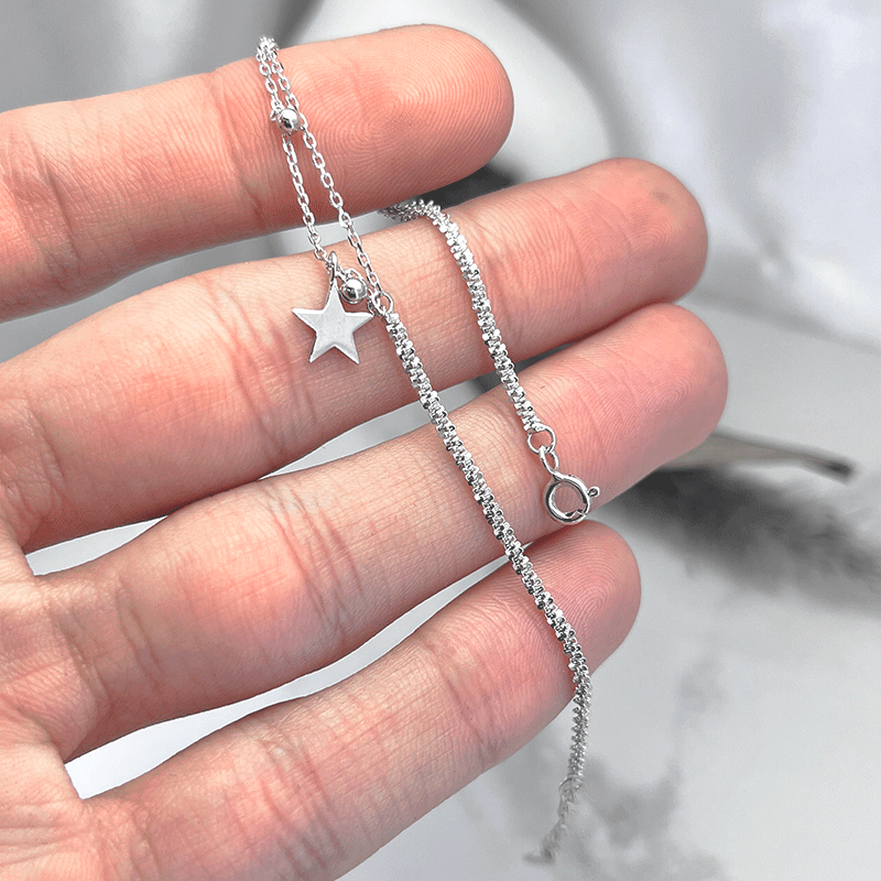 این دستبند دخترانه مدل زنجیر خاویاری و آویز ستاره جدای از جذابیت ظریف و مینیمالیستی که دارد بهترین گزینه برای استفاده همیشگی بوده و جدای از آن بهترین گزینه برای استفاده این دستبند در کنار ساعت می باشد.
