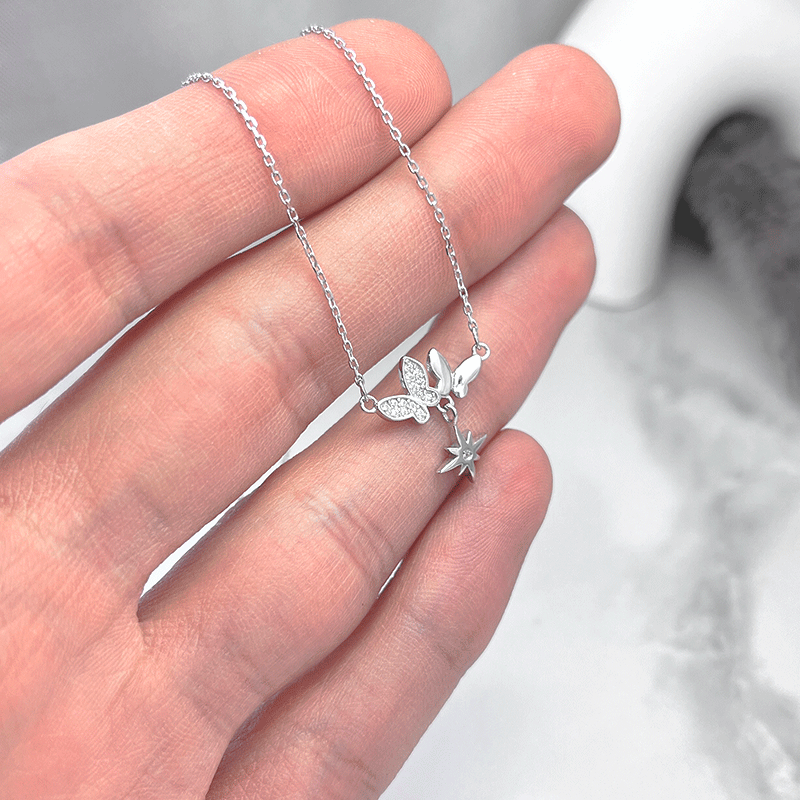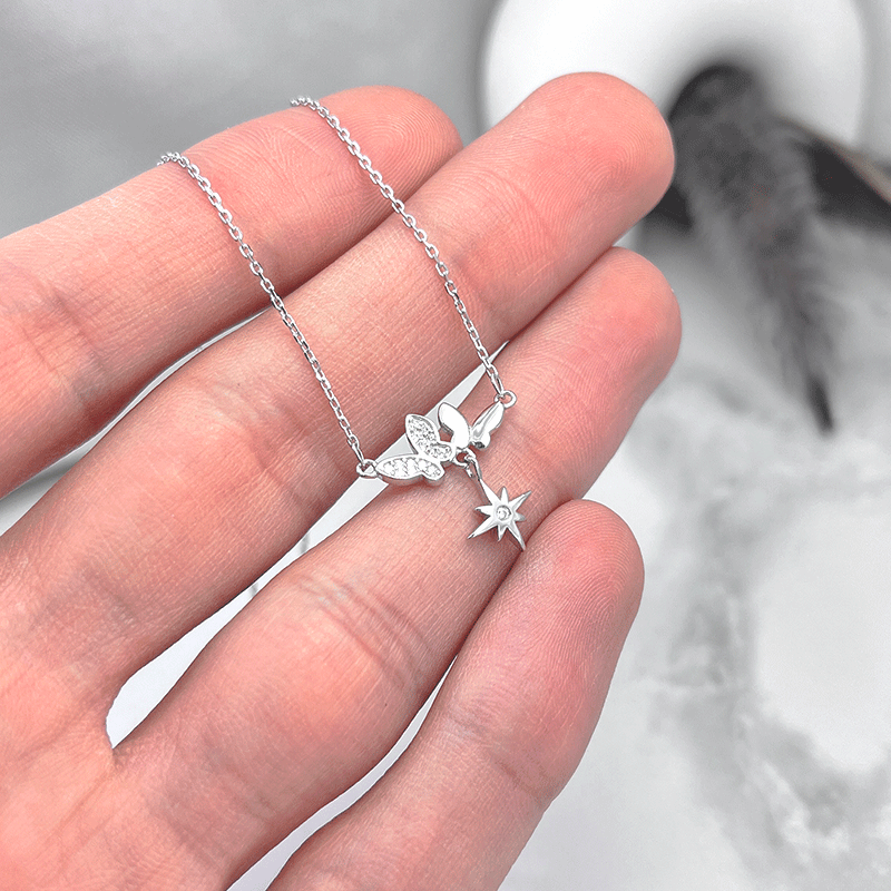 این گردنبند نقره دخترانه پروانه میتواند انتخابی عالی برای خانمهای شیکپوش باشد و همچنین بهعنوان هدیهای خاص برای عزیزان شما در مناسبتهای مختلف بسیار جذاب است.