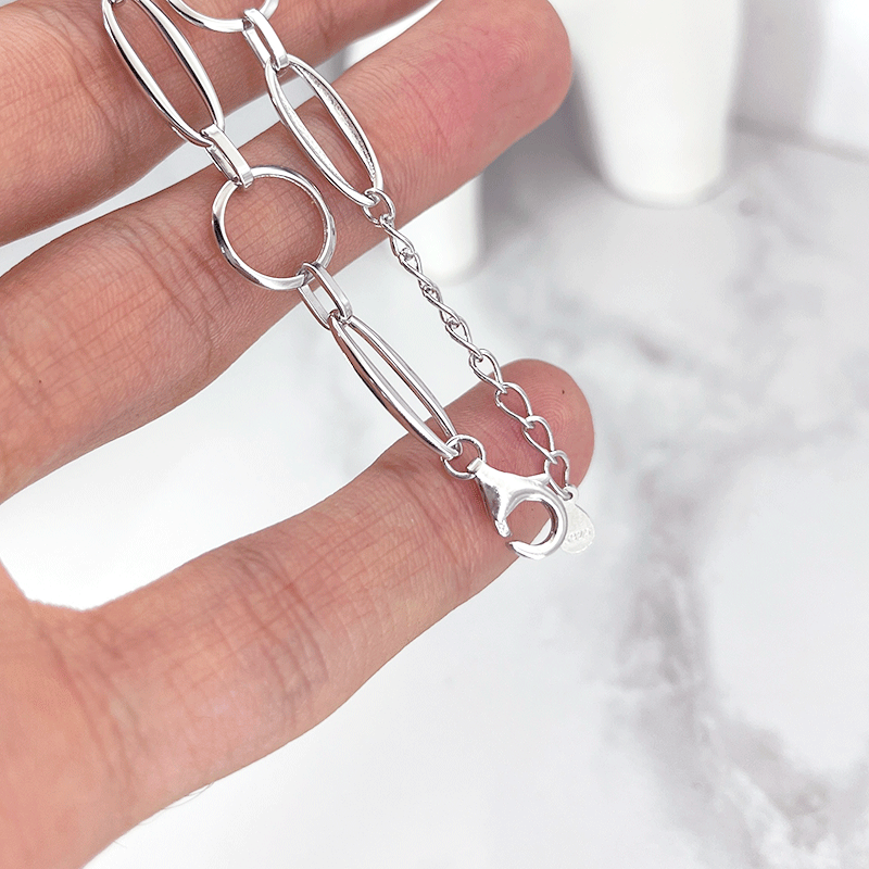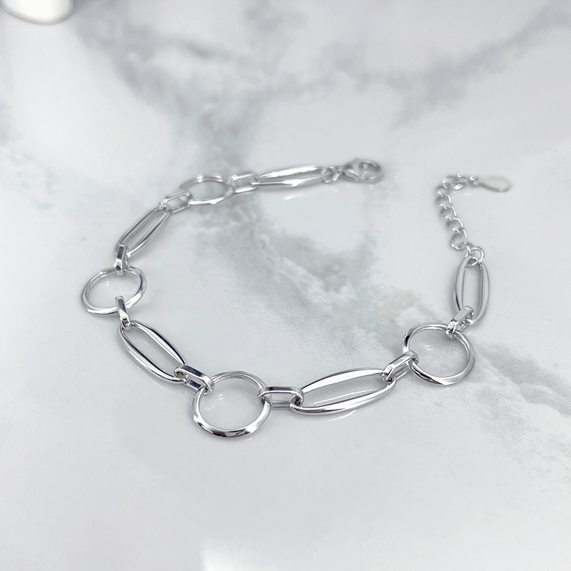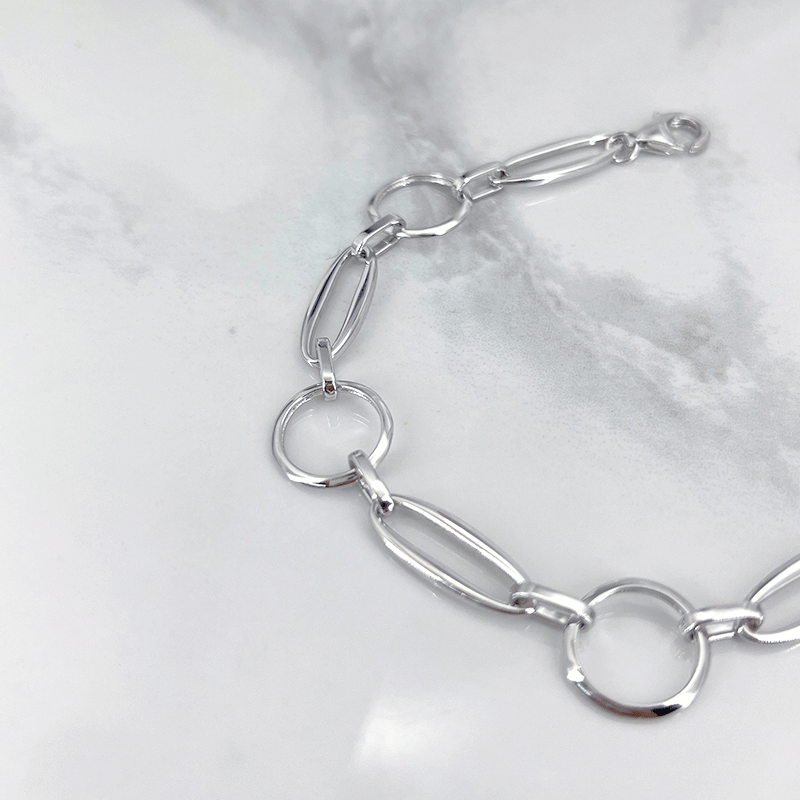 یکی دیگر از ویژگیهای متمایز این دستبند نقره بیضی و دایره، استفاده از روکش رودیوم در ساخت آن است. این روکش علاوه بر اینکه به حفظ درخشندگی اولیه دستبند کمک میکند، آن را در برابر تغییر رنگ و تاثیرات منفی عوامل محیطی مانند رطوبت یا تماس با مواد شیمیایی مقاوم میسازد.