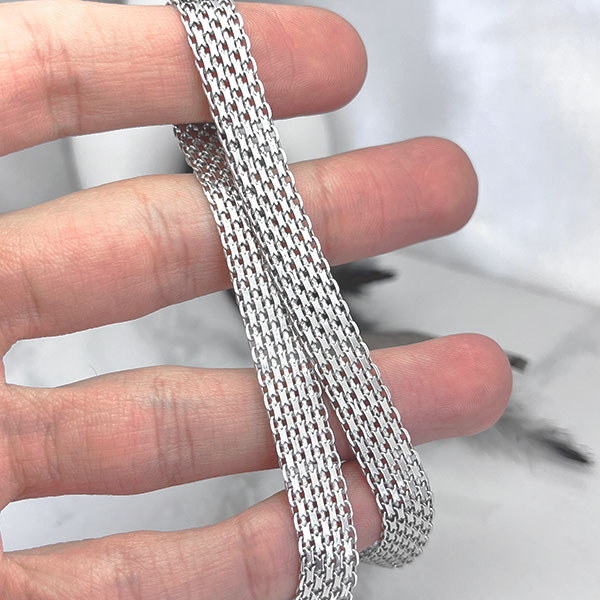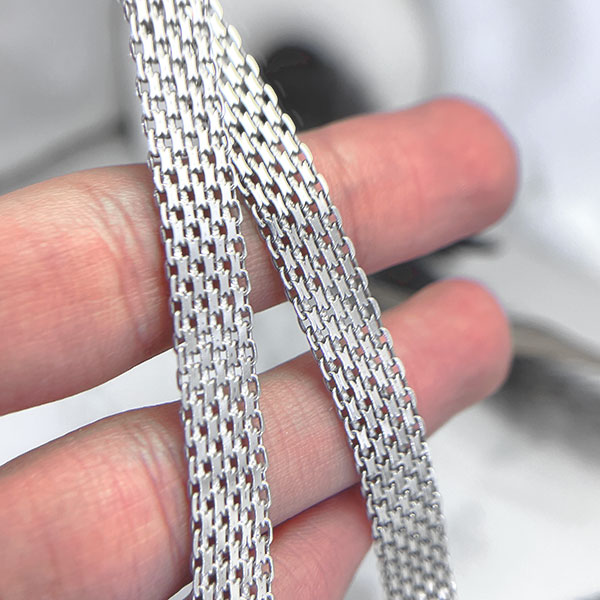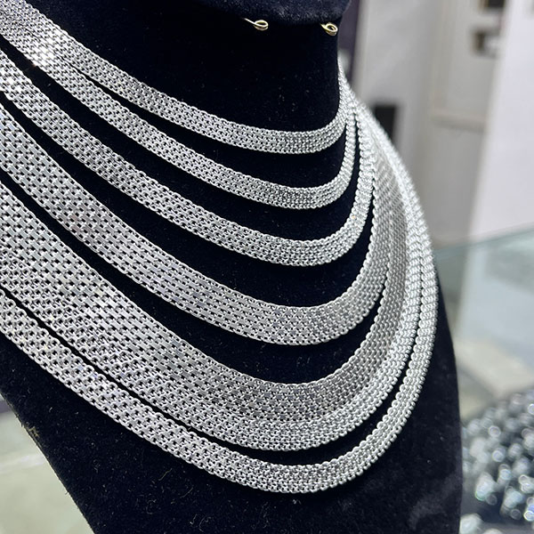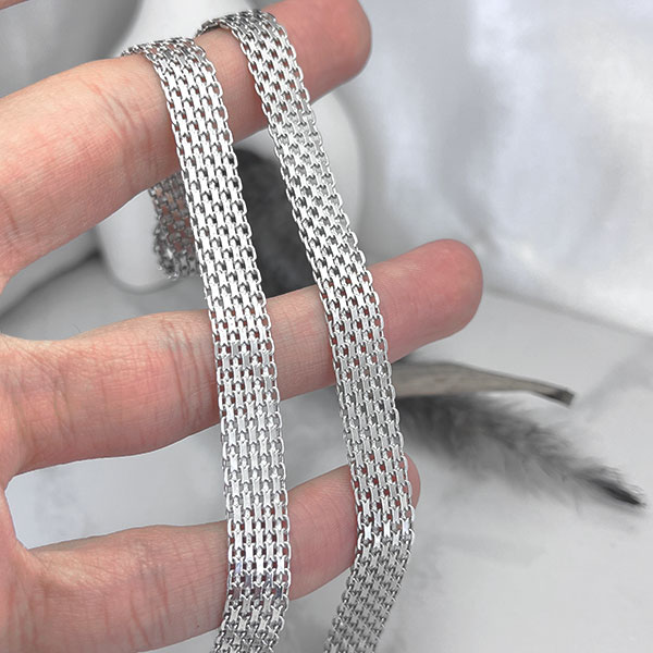 زنجیر نقره ایتالیایی از نوع بیزمارک طراحی شده است که با بافت منظم و استحکام بالا، در برابر کشیدگی و ضربههای روزمره مقاوم است. این زنجیر در عین سادگی، جلوهای شیک و خاص به گردنبند میبخشد.
