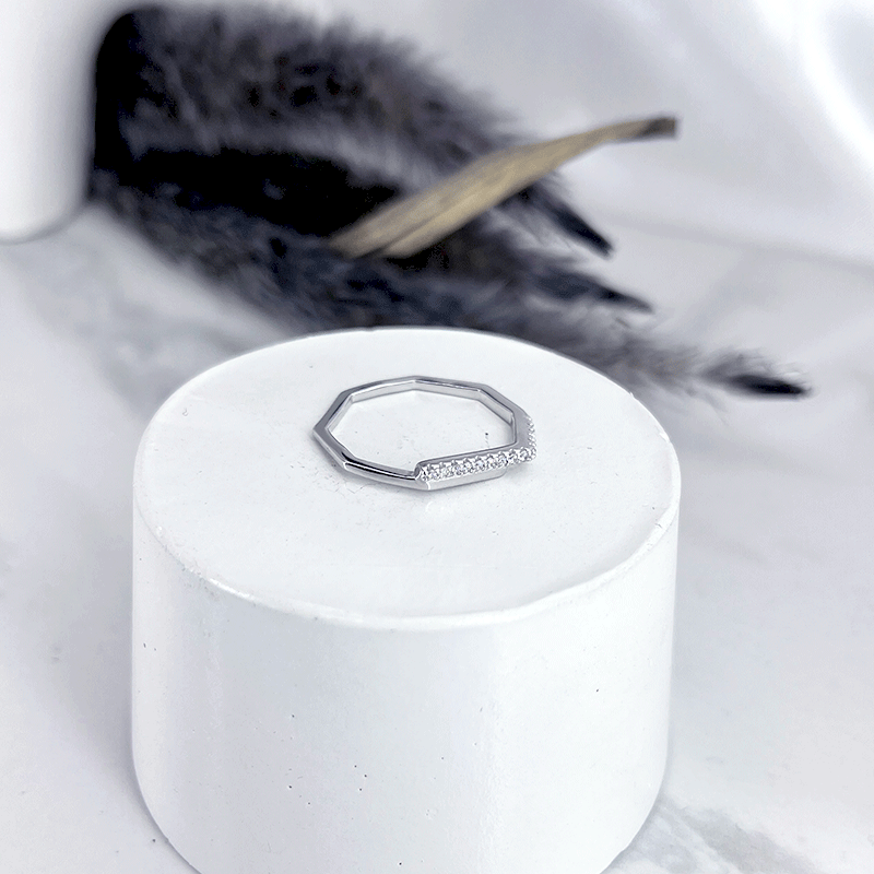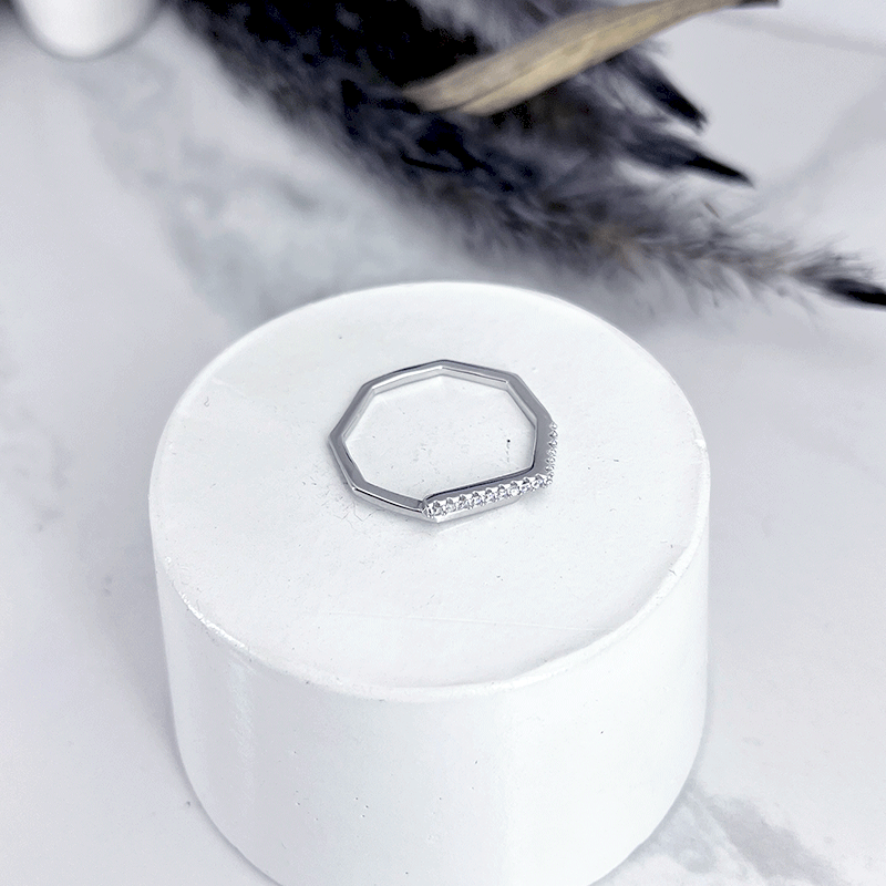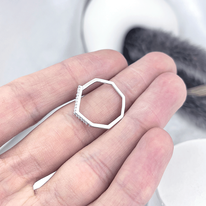 انگشتر نقره دخترانه مدل هشت ضلعی