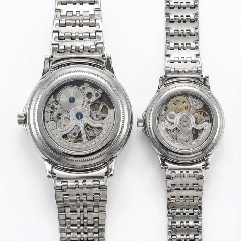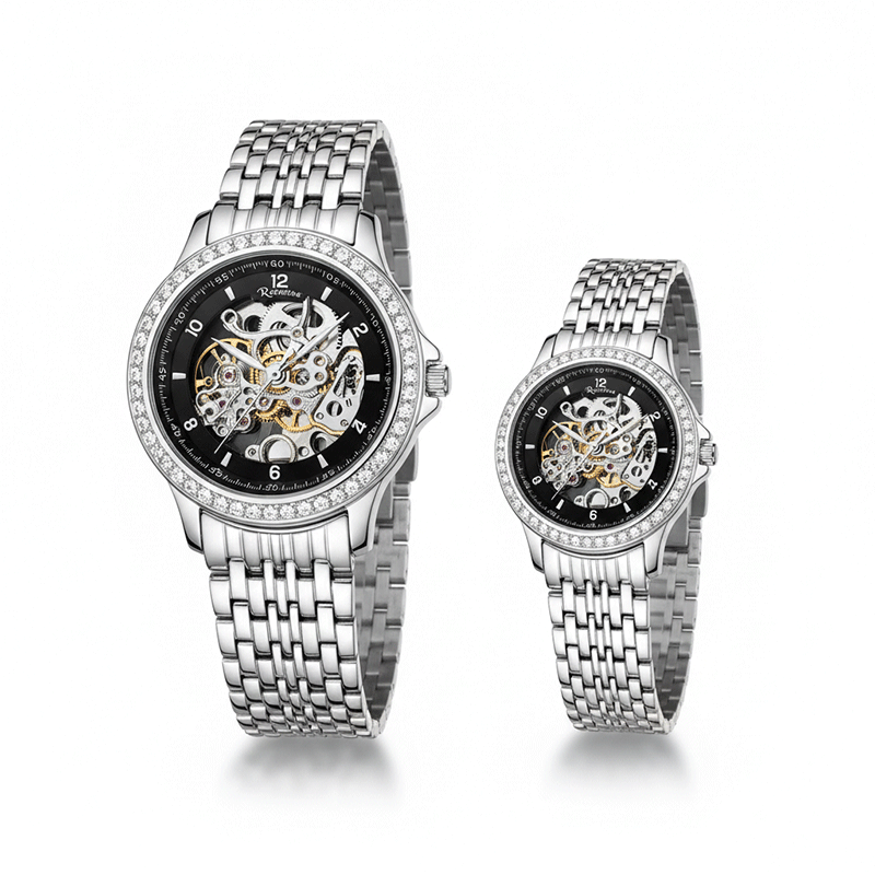 شرکت ایتالیایی سازنده این ست نقره ساعت مردانه و زنانه، برای ترکیب اصالت طراحی با کارایی بالا، از موتور اتوماتیک میوتا ژاپن بهره برده است. این موتور اسکلتون، که یکی از پیشرفتهترین فناوریها در دنیای ساعتسازی به شمار میآید، بدون نیاز به باتری کار میکند و انرژی خود را از حرکت طبیعی دست فرد تأمین مینماید.