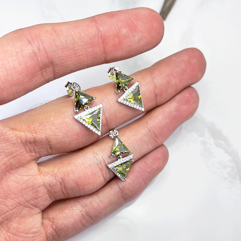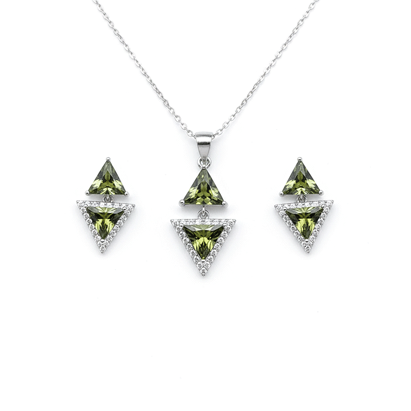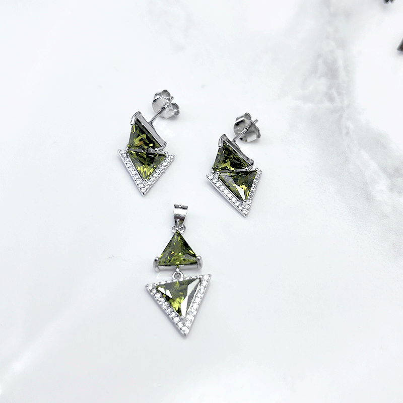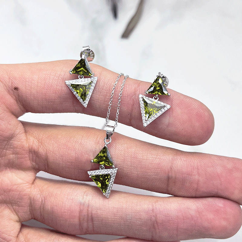 نیم ست نقره زنانه ایتالیایی اشک سبز زیتونی: گزینهای بینظیر