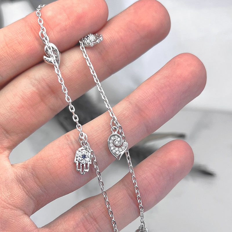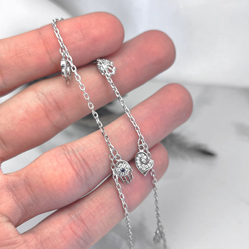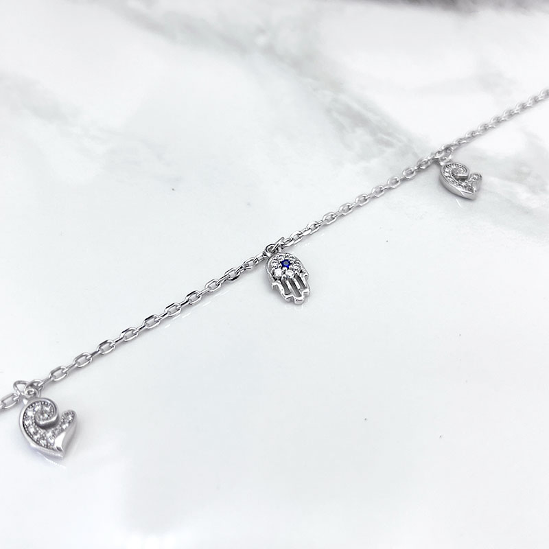 پابند نقره زنانه مدل چشم و نظر به دلیل استفاده از جنس نقره و روکش رودیوم (طلا سفید) ضد حساسیت است و برای افرادی که پوست حساسی دارند و به بدلیجاتی مانند تیتانیوم یا استیل واکنش نشان میدهند، گزینهای بسیار مناسب محسوب میشود. علاوه بر این، پابند نقره دخترانه چشم و نظر از نظر اقتصادی بسیار مقرونبهصرفهتر از طلا است، در حالی که زیبایی و کارایی مشابهی را به کاربران ارائه میدهد.