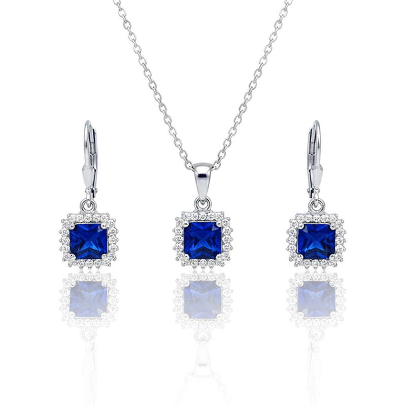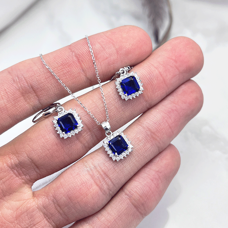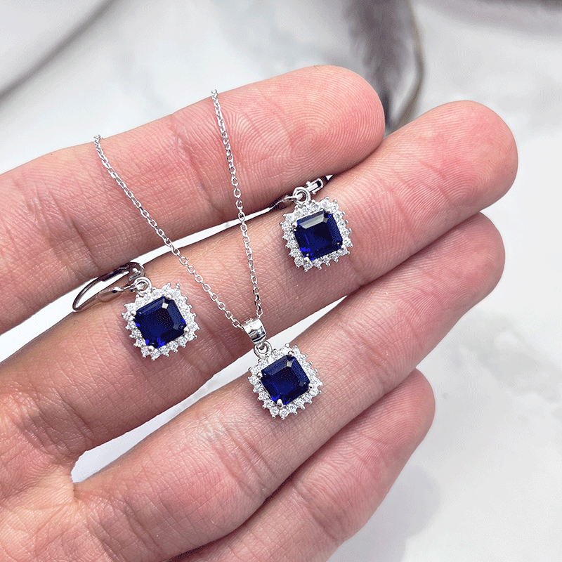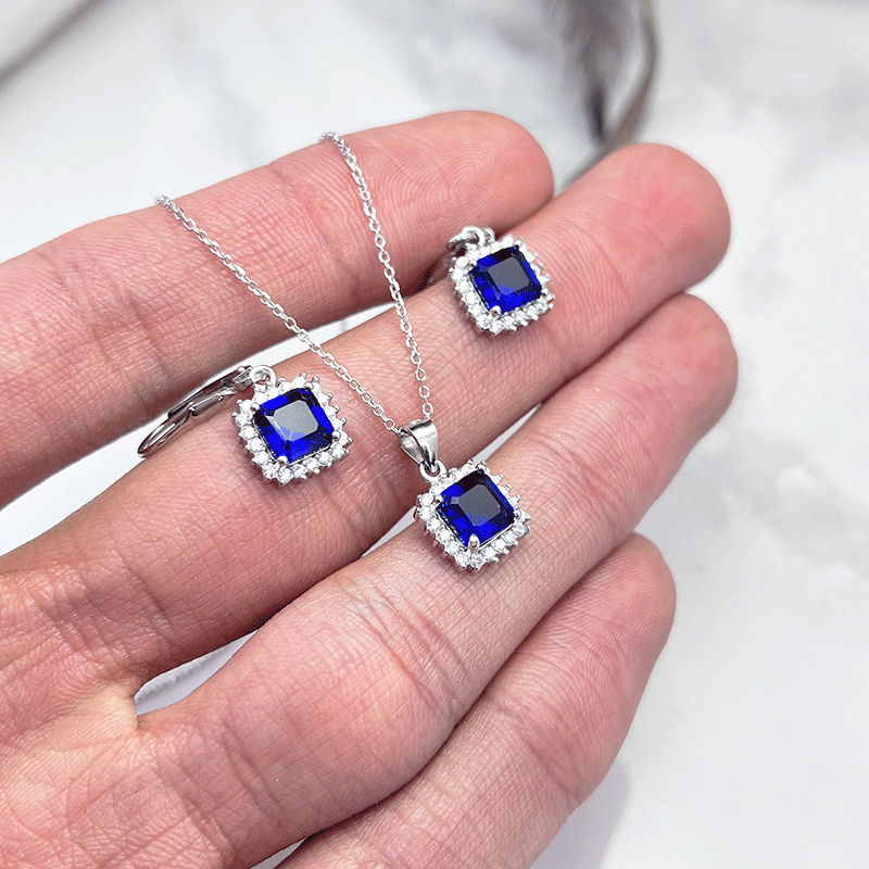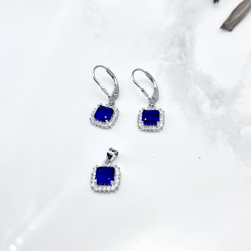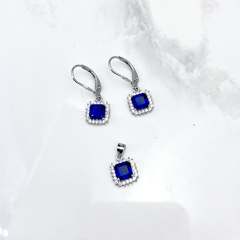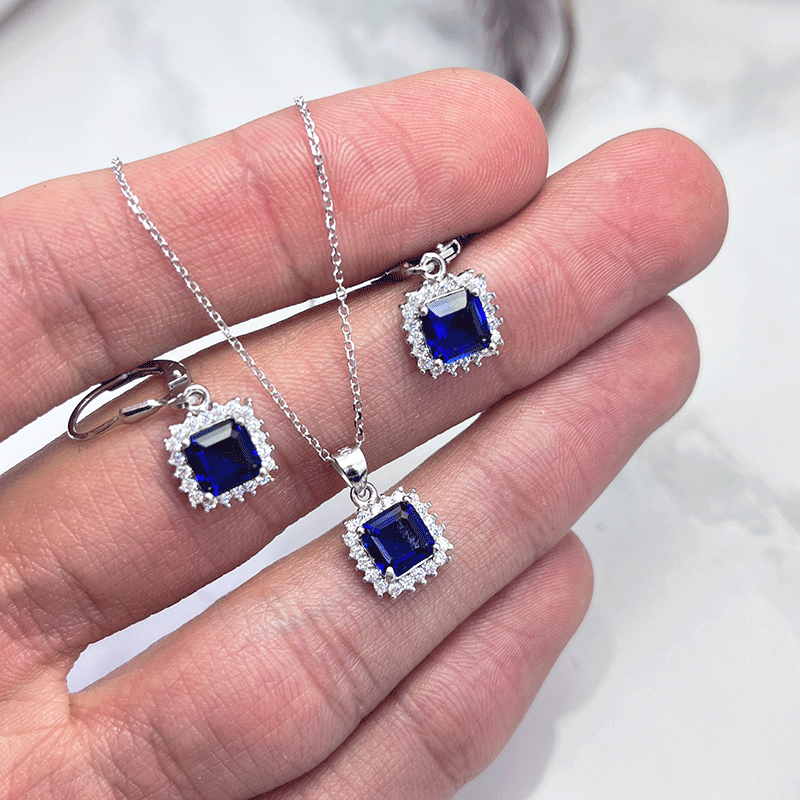 نیم ست نقره زنانه ایتالیایی مربع آبی: گزینهای بینظیر