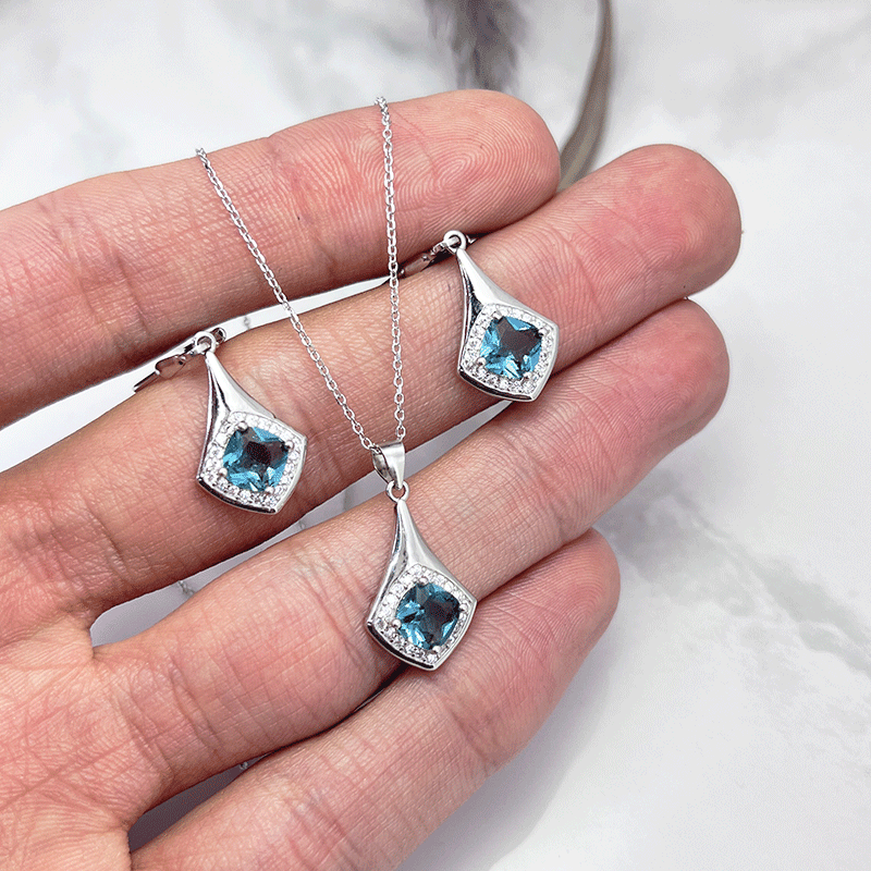 نیم ست نقره زنانه ایتالیایی آبی روشن: گزینهای بینظیر
