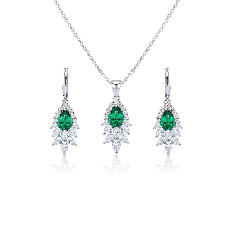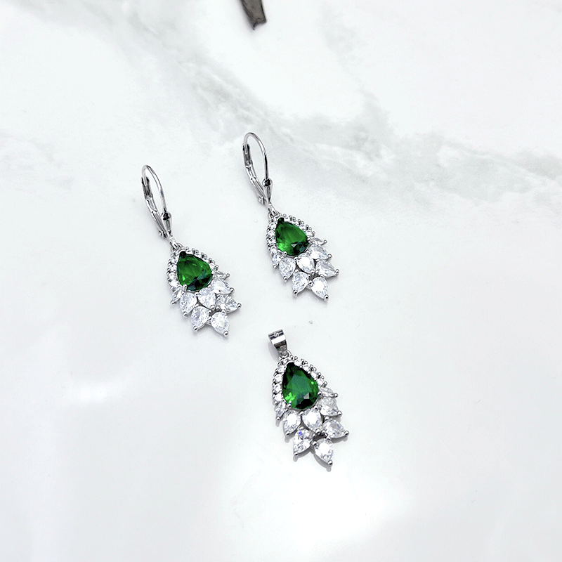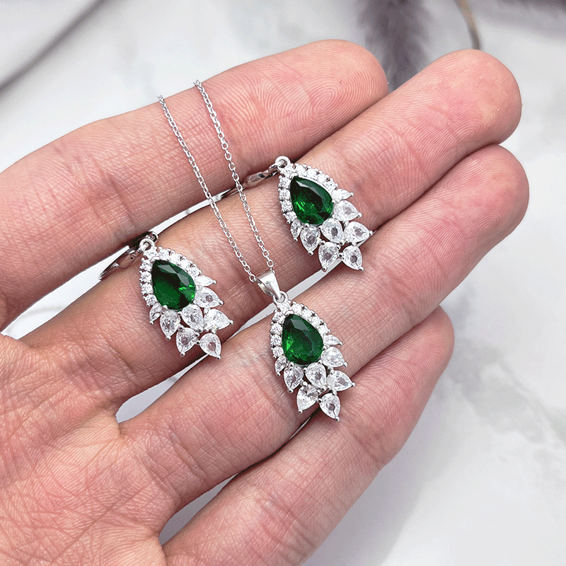 نیم ست نقره زنانه ایتالیایی اشک سبز: گزینهای بینظیر