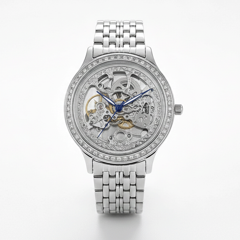 استفاده از موتور میوتا، که به دقت و دوام مشهور است، این ساعت را به گزینهای قابلاعتماد و طولانیمدت تبدیل میکند. طراحی اسکلتون این موتور، با نمایش قطعات داخلی آن، ترکیبی زیبا از هنر مهندسی و ظرافت را به نمایش میگذارد. این ویژگی نهتنها حس خاص بودن را به ساعت میبخشد، بلکه دیدن چرخش و حرکت قطعات، جذابیت بصری منحصربهفردی ایجاد کرده و هویت متمایز این محصول را تقویت میکند.