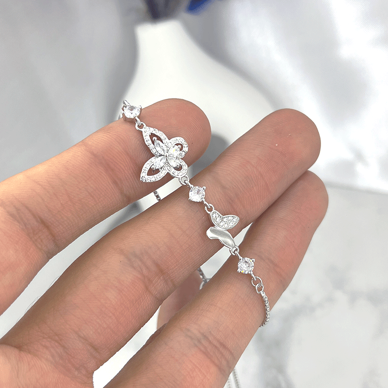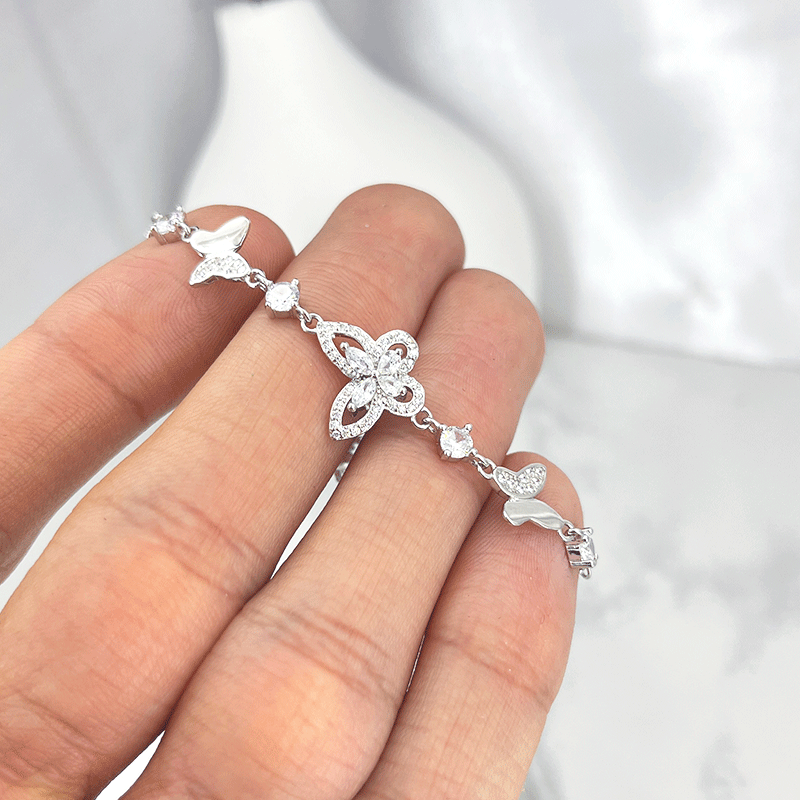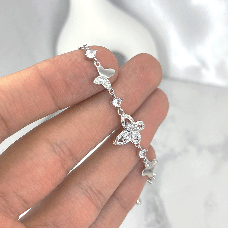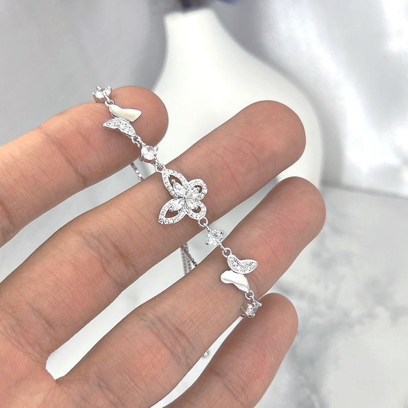دستبند نقره دخترانه مدل آسانسوری پروانه