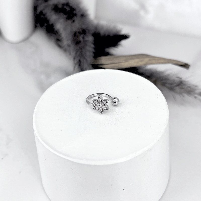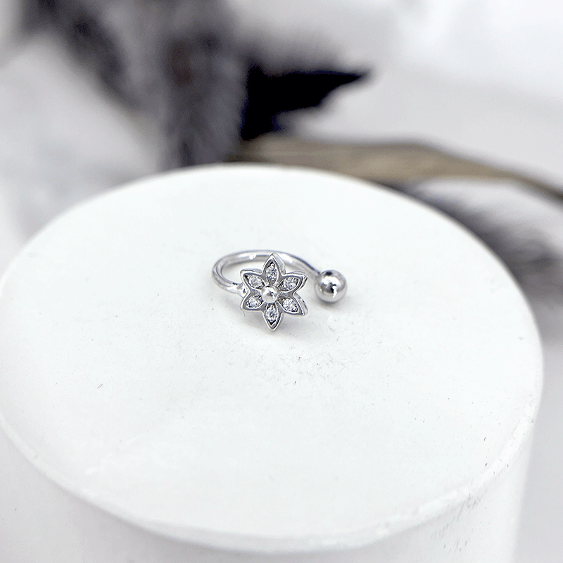 شکل گل این ایرکاف، علاوه بر زیبایی طبیعی و هماهنگی با طرح کلی، یک حس ظرافت و لطافت خاص را به ارمغان میآورد. این طراحی جذاب،ایرکاف نقره را به انتخابی ایدهآل برای کسانی که به دنبال اکسسوریهای متفاوت و چشمنواز هستند، تبدیل کرده است.