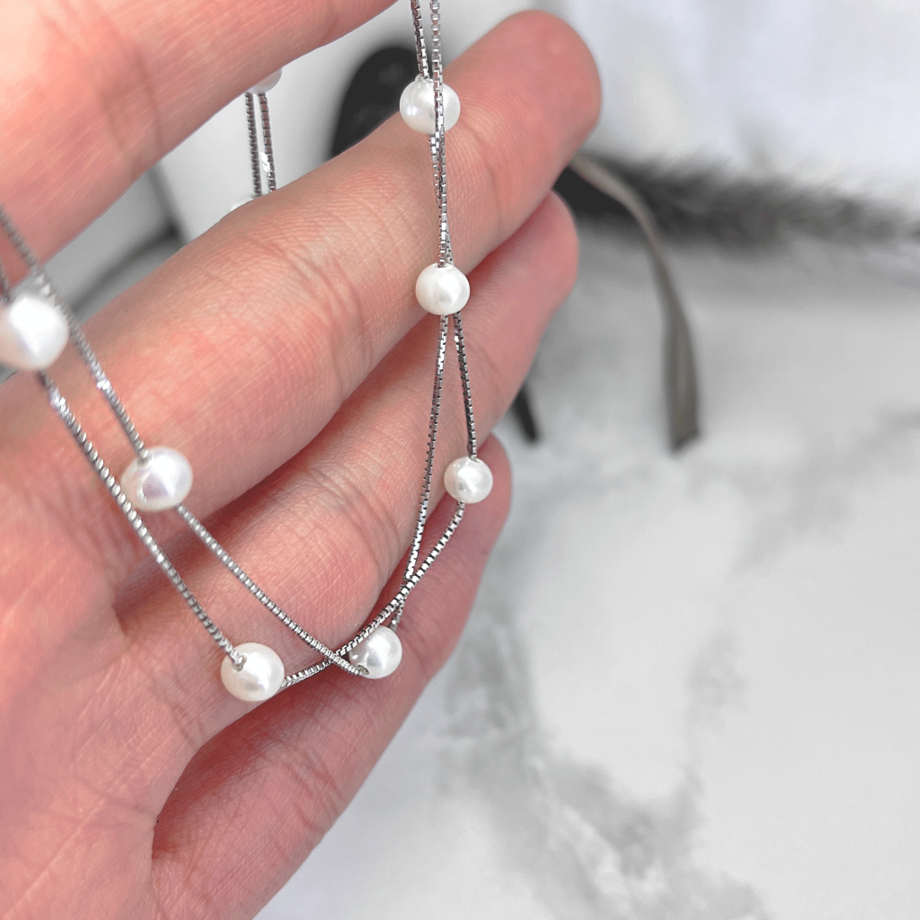 زنجیر گردنبند نقره مروارید زنانه دو ردیف