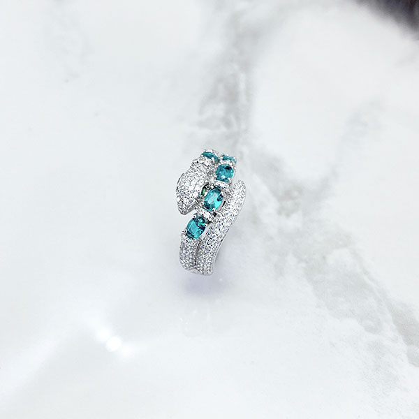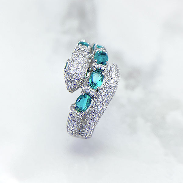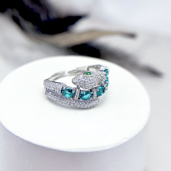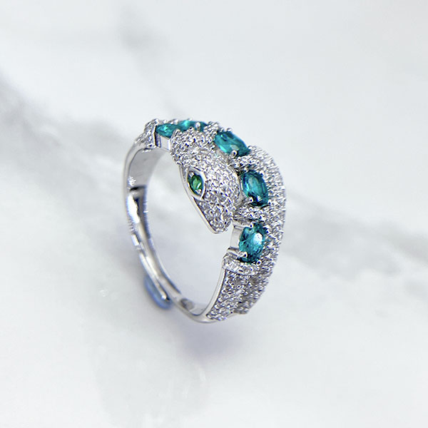 شرکت سازنده ایتالیایی برای ساخت این انگشتر نقره زنانه مدل مار از نگین های اتم و کریستال با تراش گرد و امرآلد استفاده کرده که جزو درخشنده ترین نوع تراش برای نگین هستند و در استفاده روزمره با تابیدن نور و شکست نوری متفاوت بازتاب نور بالا و جلوه خاصی از خود نشان دهند.