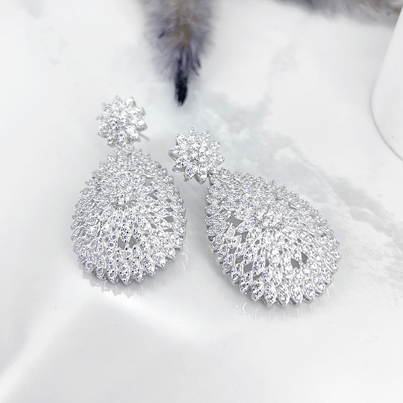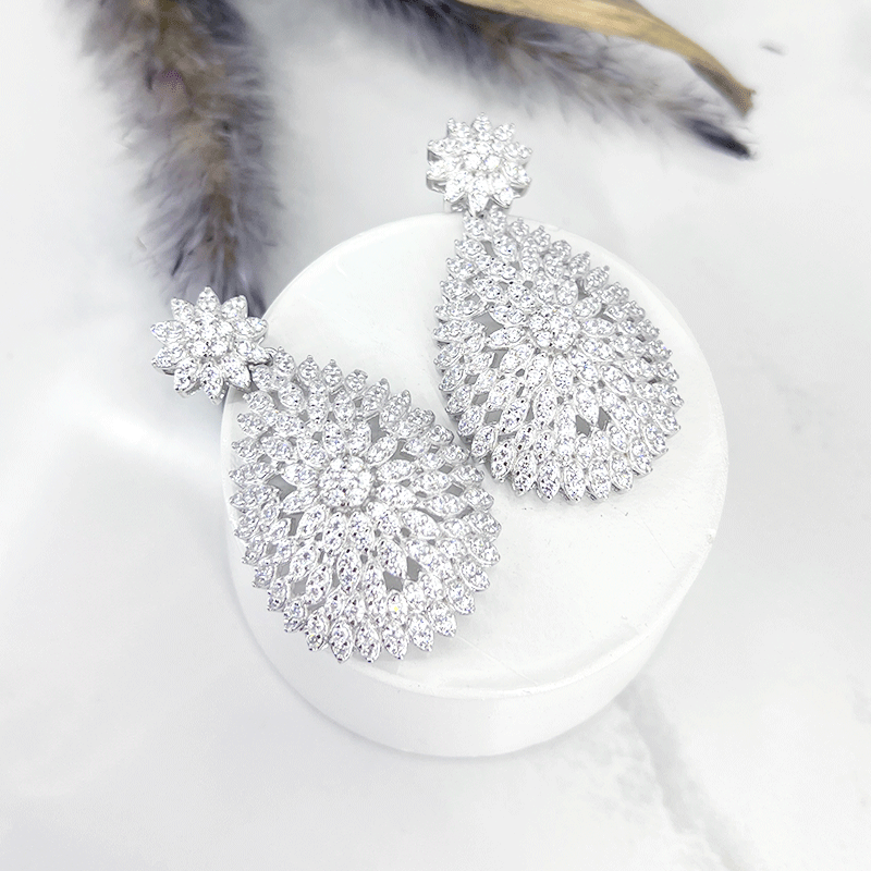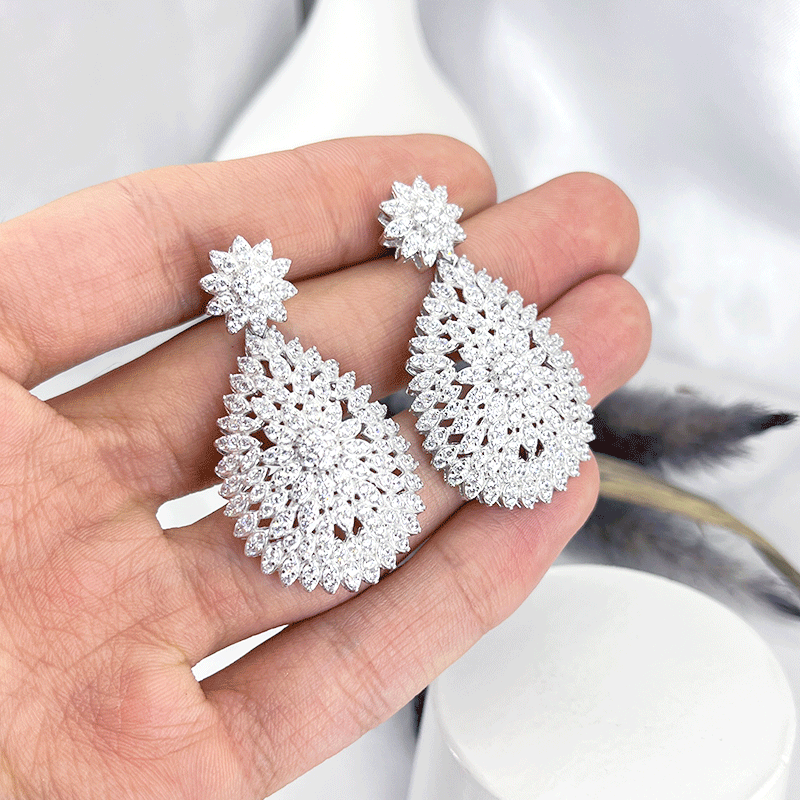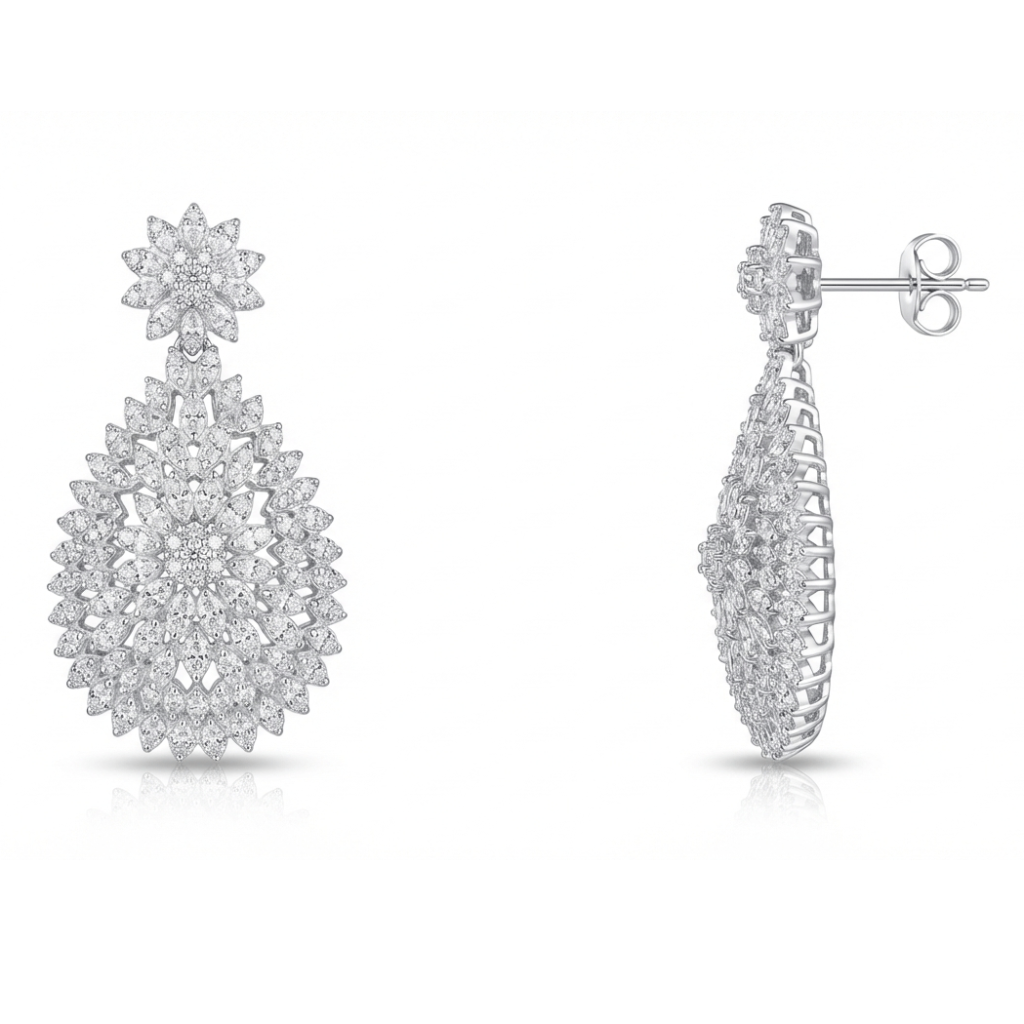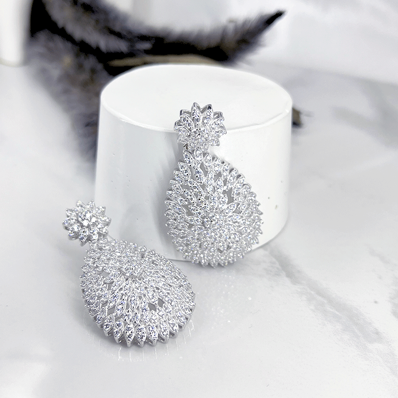 گوشواره نقره زنانه مجلسی مدل اشک گل